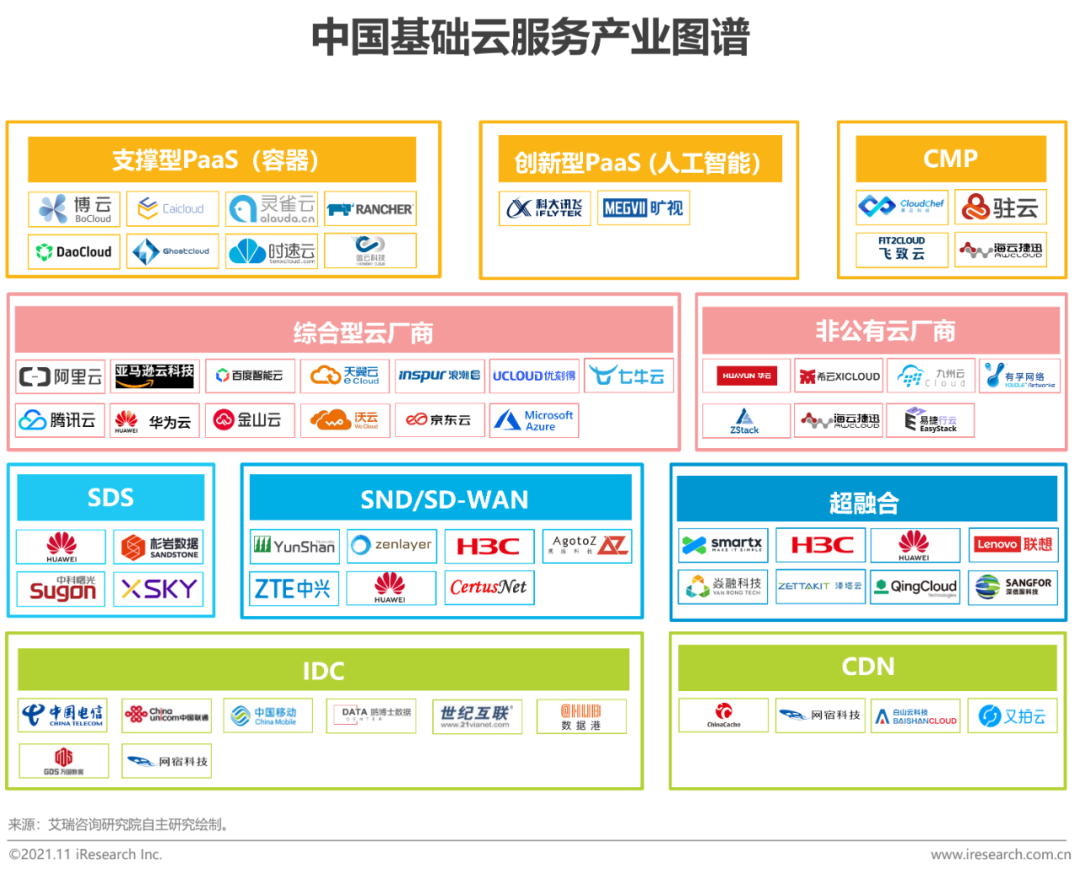 2021上半年,中国基础云服务厂商发展聚焦在:1)升级云基础设施:推动IDC基础设施建设向智能化、敏捷化方向发展;2)强化基础云能力:分布式云、云原生、湖仓一体等基础云技术能力持续升级;3)拓宽行业云服务:传统产业(能源行业)数字化升级加速,云+行业链接日益紧密;4)链接多元云应用:依托基础云构建从IaaS到SaaS的完整生态。